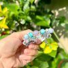 - Jsou navlečeny na tyrkysové a fialové voskované šňůře a převázány stejnou nití v něžně kávovém tónu