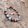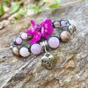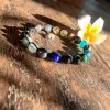 Kameny a komponenty vybírám intuitivně, na základě Vašeho zadání a všech informací, které mi o sobě napíšete. K výrobě náramku používám ty nejkrásnější komponenty a minerální kameny (vybírám asi ze 150 druhů kamenů), které kdekoli na světě potkám. Je pro mě důležitá energie a barva, kterou intuitivně proměním do barevné harmonické kombinace, která je jedinečná pro Vás.